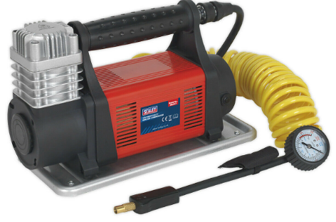 Inflators Air Compressor / flat tires. avoid the need to replace the wheel at the roadside. The use of pressurized gas removes the need for strenuous pumping to fill your tires to the right pressure. Working voltage : 12V DC; Rated Input Power : 180 W; Air Flow : 40 L/min; Weight : 1.9Kg Maximum Capacity: 150 psi